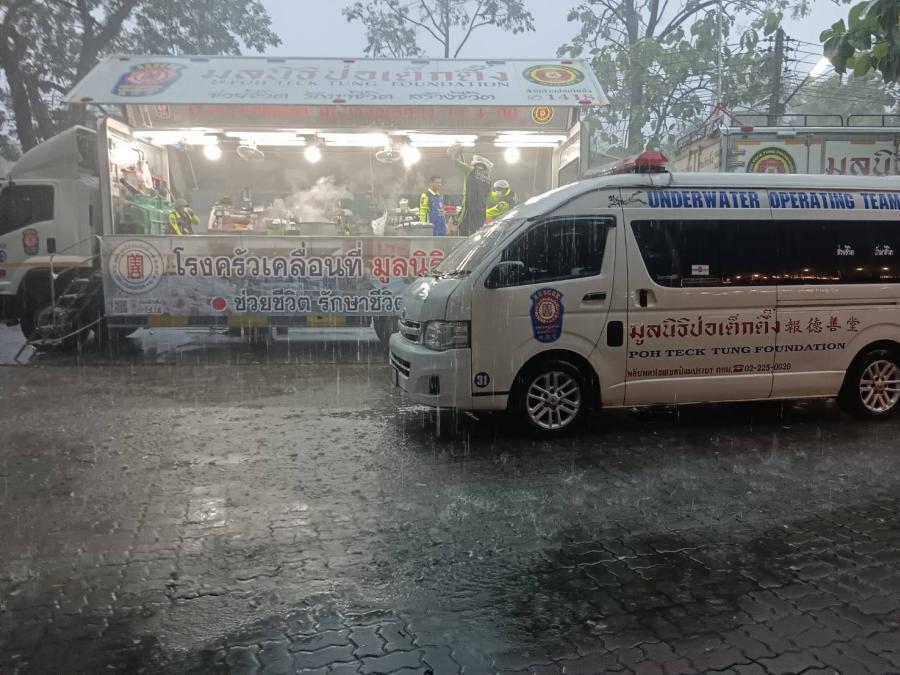 มูลนิธิป่อเต็กตึ๊ง โดยทีมบรรเทาสาธารณภัย รวม 50 นาย พร้อมอุปกรณ์กู้ภัย กู้ชีพ รถกู้ภัย กู้ชีพยกสูง 4x4 ยังคงเร่งลุยเข้าพื้นที่ อพยพผู้ประสบภัยน้ำท่วมชาวหาดใหญ่ ประกอบอาหารปรุงสุกแจกจ่ายอาหารกล่องพร้อมน้ำดื่ม เสื้อชูชีพ ยาสามัญประจำบ้าน และอาหารสุนัขและแมวต่อเนื่อง