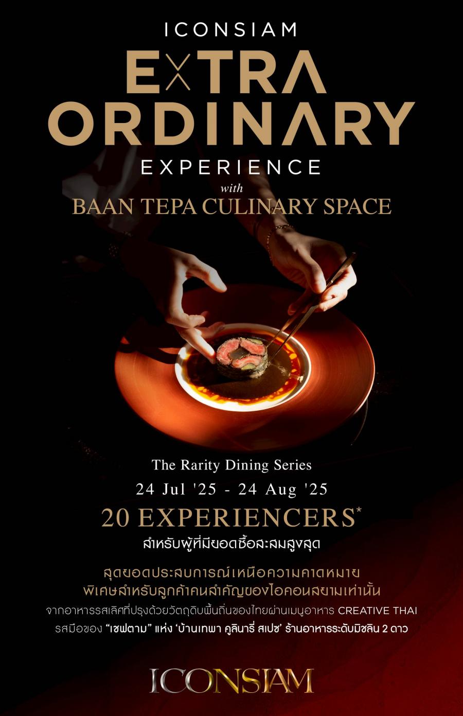 • ลูกค้าไอคอนสยามที่เป็นสมาชิก ONESIAM ลงทะเบียนร่วมกิจกรรม “ICONSIAM Extraordinary Experience The Rarity Dining series with Baan Tepa Culinary Space” ผ่าน ONESIAM SuperApp ตั้งแต่วันที่ 24 กรกฎาคม 2568 – 24 สิงหาคม 2568