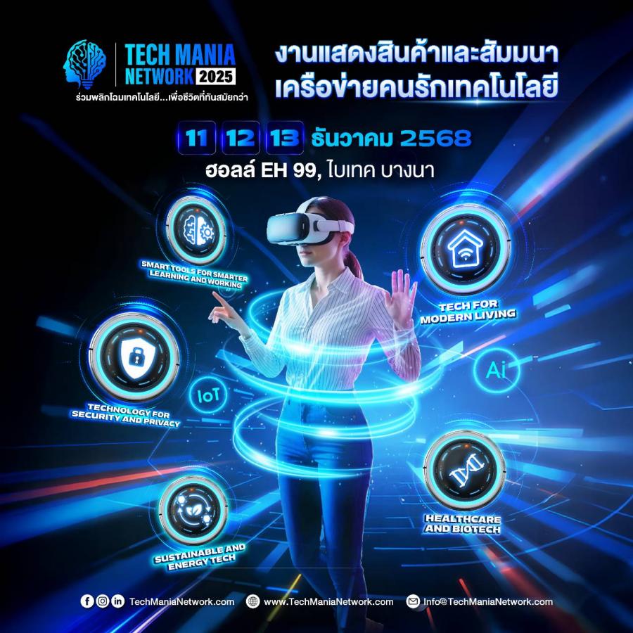 โดยงานแรกของปีนี้ คืองาน Tech Mania Network จัดวันที่ 11-13 ธันวาคม 2568 ที่ฮอลล์ EH 99 ไบเทค บางนา บนพื้นที่จัดงานกว่า 5500 ตร.ม. มีผู้สนับสนุนทั้งภาครัฐและเอกชนกว่า 30 ราย คาดว่ามีผู้แสดงสินค้ากว่า 250 ราย ผู้ซื้อตัวจริงกว่า 8000 รายทั้งไทยและต่างประเทศ คาดว่าจะมีเงินสะพัดกว่า 300 ล้านบาท