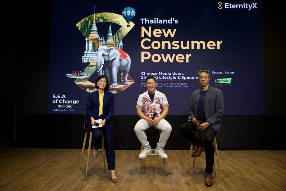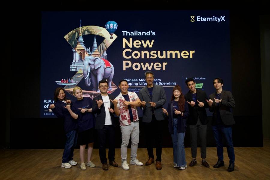 กรุงเทพฯ ประเทศไทย --19 สิงหาคม 2568 บริษัท อีเทอร์นิตี้เอ็กซ์ มาร์เก็ตติ้ง เทคโนโลยี่ จำกัด บริษัทการตลาดชั้นนำระดับโลกที่ขับเคลื่อนด้วย AI และเชี่ยวชาญด้านการเข้าถึงกลุ่มผู้บริโภคจีน ประกาศเปิดสำนักงานในประเทศไทยอย่างเป็นทางการ พร้อมเผยข้อมูลเชิงลึกจากรายงาน S.E.A of Change | Thailand Edition ที่ทำร่วมกับ iResearch เผยกลุ่มผู้ใช้สื่อจีนซึ่งเป็นกลุ่มผู้บริโภคที่เติบโตรวดเร็ว ใช้จ่ายสูง และมีส่วนเชื่อมโยงทางวัฒนธรรม เป็นอีกกลุ่มผู้บริโภคที่มีอิทธิพลและมีกำลังซื้อสูงที่สุดในประเทศไทย 47% ของกลุ่มดังกล่าวใช้จ่ายไปกับผลิตภัณฑ์พรีเมียมกว่า 7000 ดอลลาร์สหรัฐ หรือประมาณ 231000 บาทต่อคนต่อปี ซึ่งสูงสุดเมื่อเทียบกับ 3 ประเทศในภูมิภาคเอเชียตะวันออกเฉียงใต้จากการสำรวจ