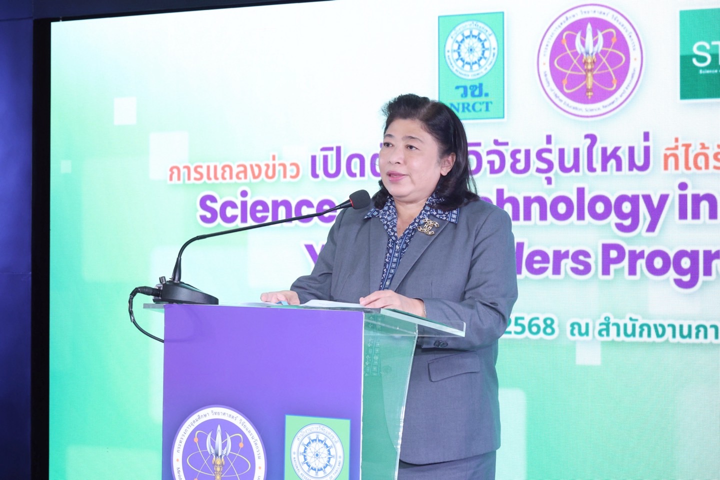 ดร. วิภารัตน์ ดีอ่อง ผู้อำนวยการสำนักงานการวิจัยแห่งชาติ กล่าวว่า วช. ได้ผลักดันนักวิจัยรุ่นใหม่ ที่ได้รับการคัดเลือกจาก วช. สู่เวทีนานาชาติ Science and Technology in Society Forum Young Leaders Program 2025 ซึ่งเป็นเวทีระดับนานาชาติสำหรับนักวิจัยรุ่นใหม่โดยเฉพาะ และ วช. ได้สนับสนุนอย่างต่อเนื่องมาเป็นเวลา 3 ปีแล้ว