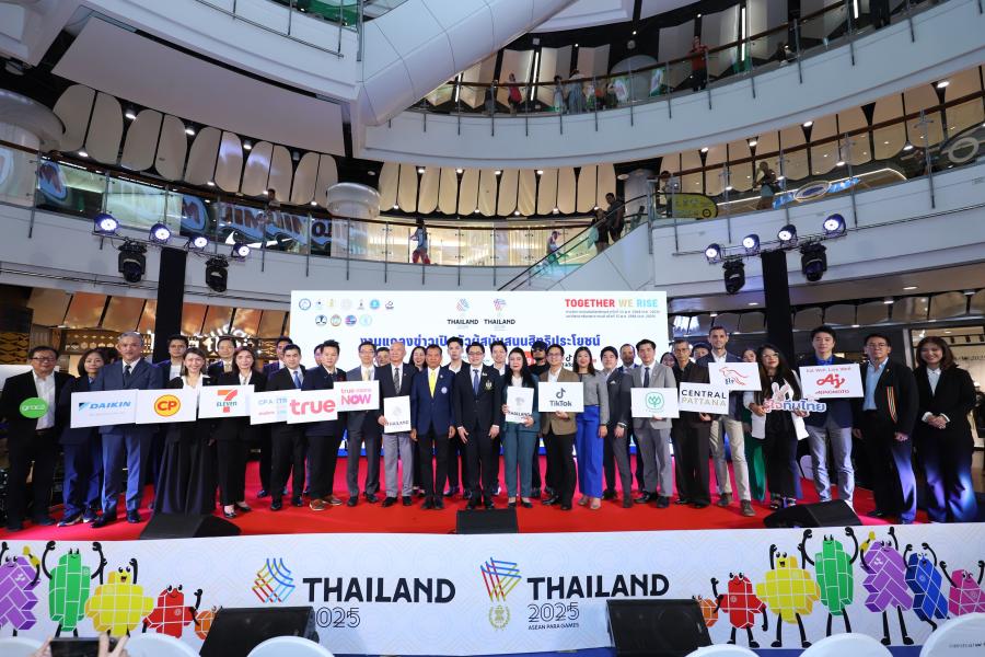 การกีฬาแห่งประเทศไทย (กกท.) จัดงาน “Together We Rise” การแถลงข่าวเปิดตัวผู้สนับสนุนสิทธิประโยชน์การแข่งขันกีฬาซีเกมส์ ครั้งที่ 33 และกีฬาอาเซียนพาราเกมส์ ครั้งที่ 13 อย่างเป็นทางการ ณ ลานเซ็นทรัลคอร์ท ชั้น 1 ศูนย์การค้าเซ็นทรัลเวิลด์ กรุงเทพฯ