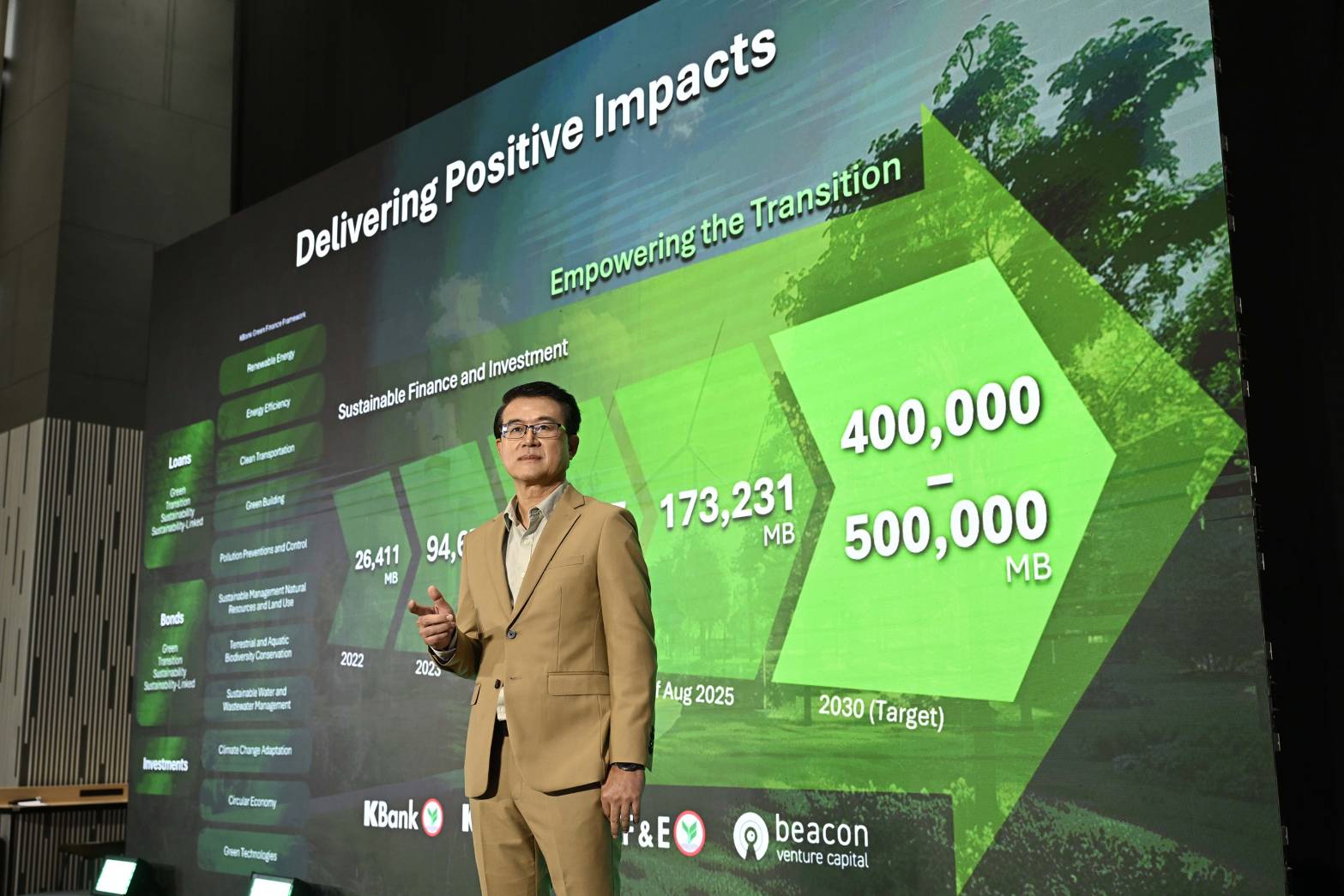 สินเชื่อสำหรับโครงการทางธุรกิจเพื่อความยั่งยืนกว่า 500 โครงการ รวมถึงการดำเนินงานในมิติ Beyond Banking ธนาคารได้ปรับเป้าหมายสินเชื่อและเงินลงทุนเพื่อความยั่งยืน เป็น 4-5 แสนล้านบาท ภายในปี 2573 (ค.ศ.2030) เพื่อเร่งการเปลี่ยนผ่านสู่เศรษฐกิจคาร์บอนต่ำอย่างมีประสิทธิภาพ ตลอดจนมุ่งมั่นพัฒนา Beyond Banking Solution เพื่อส่งมอบ Climate Solution ที่จะช่วยเสริมสร้างศักยภาพให้แก่ลูกค้า และส่งเสริมการสร้าง Carbon Ecosystem ที่ครอบคลุมทุกมิติของการแก้ไขปัญหาสภาพภูมิอากาศ ได้แก่ การเป็นที่ปรึกษาด้านความยั่งยืนและการลดการปล่อยก๊าซเรือนกระจกสำหรับภาคธุรกิจที่ต้องการปรับตัว