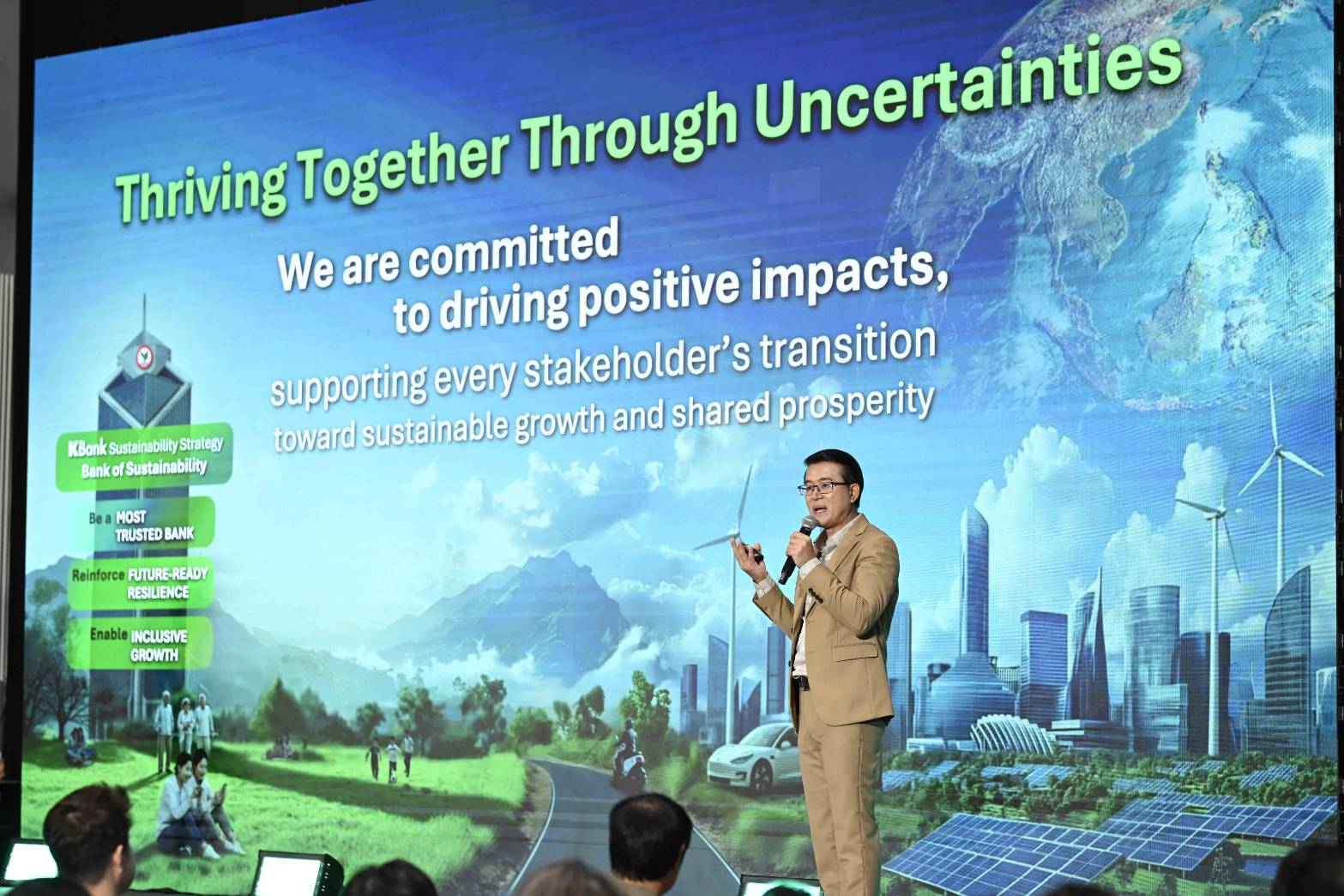 • ธนาคารกสิกรไทยจับกระแสความท้าทาย ทั้งปัญหาเชิงโครงสร้างของประเทศ ปัจจัยจากภายนอกด้านภูมิรัฐศาสตร์ สงครามการค้า รวมทั้งแรงกดดันด้านปัญหาการเปลี่ยนแปลงสภาพภูมิอากาศ ที่ส่งผ่านมาตรการทางการค้าที่ทำให้ธุรกิจต้องปรับตัวไปสู่เศรษฐกิจคาร์บอนต่ำ