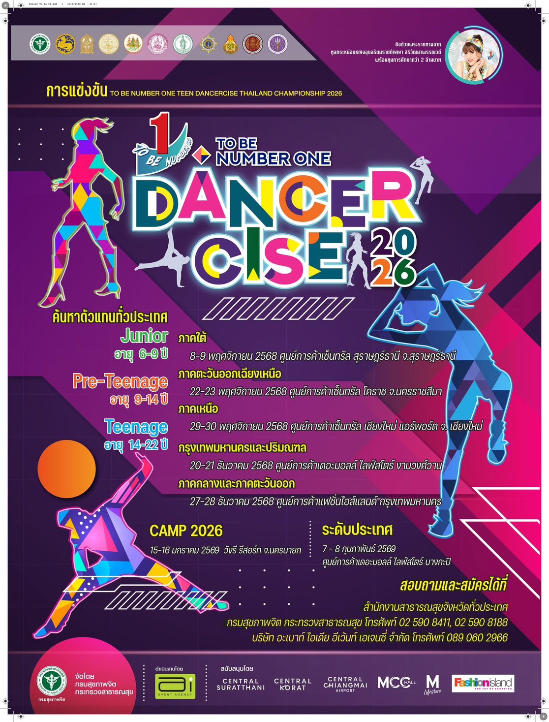 กรมสุขภาพจิต เชิญชวนเยาวชนคนรุ่นใหม่สมัครเข้าร่วมแข่งขัน TO BE NUMBER ONE TEEN DANCERCISE THAILAND CHAMPIONSHIP 2026 ชิงถ้วยพระราชทานจากทูลกระหม่อมหญิงอุบลรัตนราชกัญญา สิริวัฒนาพรรณวดี