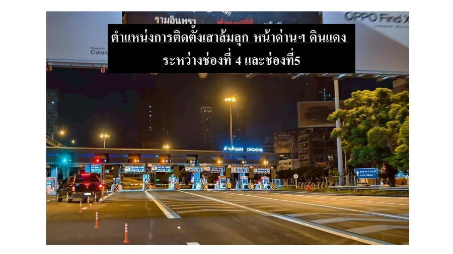กทพ. ติดตั้งเสาล้มลุกบริเวณหน้าด่านฯ ดินแดง ทางพิเศษเฉลิมมหานคร เพื่อแก้ปัญหารถในช่องจ่ายเงินสดมาเบียดแทรกรถผู้ใช้บริการที่จะเข้าช่อง Easy Pass