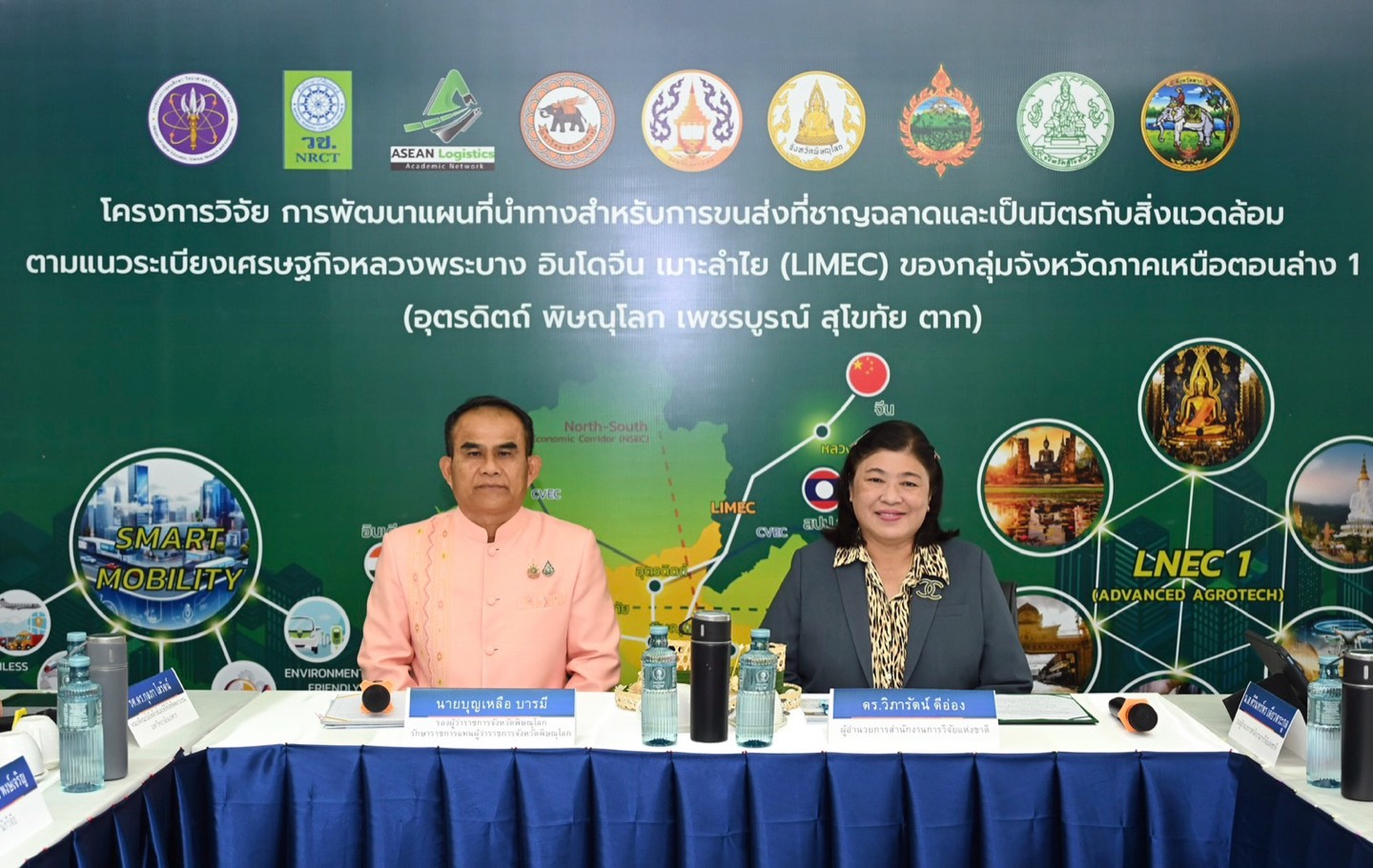 สำนักงานการวิจัยแห่งชาติ(วช.) กระทรวงการอุดมศึกษา วิทยาศาสตร์ วิจัยและนวัตกรรม ติดตามความสำเร็จโครงการ “การพัฒนาแผนที่นำทางสำหรับการขนส่งที่ชาญฉลาดและเป็นมิตรกับสิ่งแวดล้อม ตามแนวระเบียงเศรษฐกิจหลวงพระบาง–อินโดจีน–เมาะลำไย (LIMEC)” ของกลุ่มจังหวัดภาคเหนือตอนล่าง 1 (อุตรดิตถ์ พิษณุโลก เพชรบูรณ์ สุโขทัย และตาก) ณ คณะโลจิสติกส์และดิจิทัลซัพพลายเชน มหาวิทยาลัยนเรศวร จังหวัดพิษณุโลก