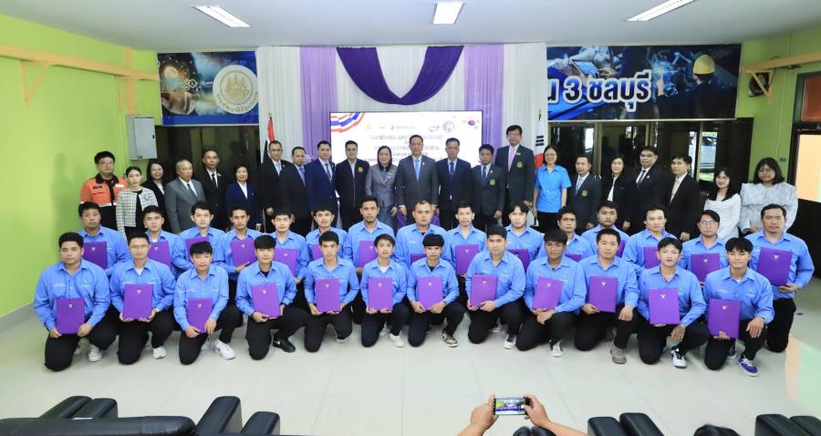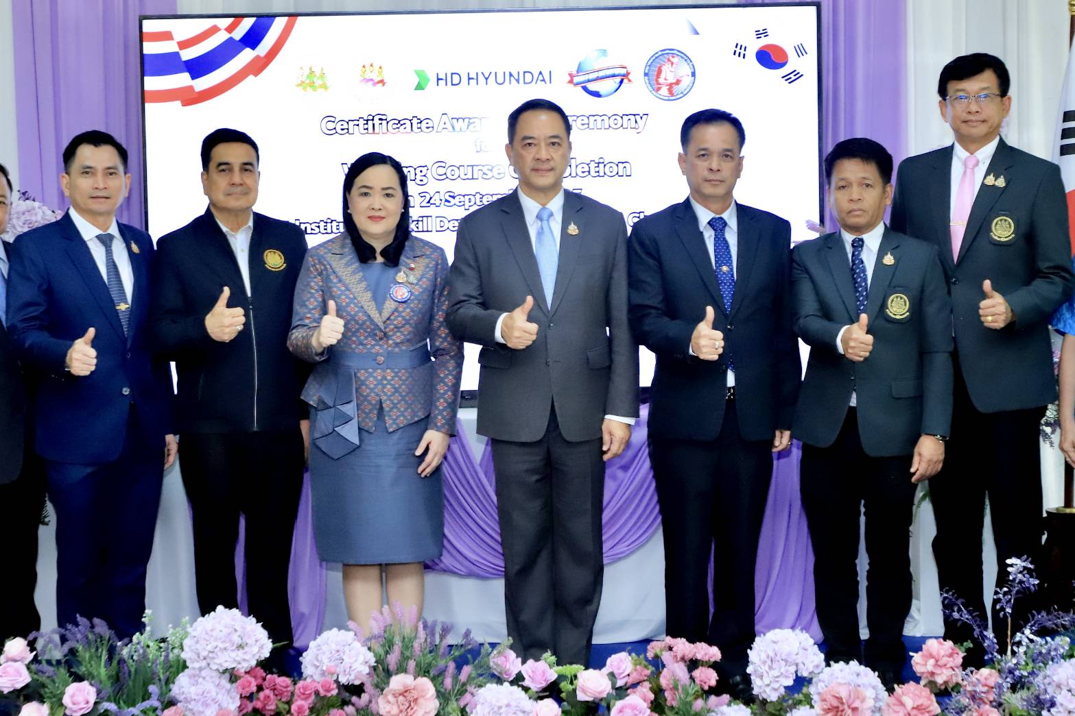 นอกจากนี้กระผมยังได้มอบวุฒิบัตรให้แด่ผู้ผ่านการฝึกอบรมหลักสูตรการเชื่อม FCAW 3G และ GTAW 6G (FCAW 3G and GTAW 6G WELDING) สำหรับอุตสาหกรรมต่อเรืออีกด้วย สำหรับในปีงบประมาณ พ.ศ. 2569 กรมพัฒนาฝีมือแรงงานมีเป้าหมายพัฒนากำลังแรงงานในเขต EEC จำนวน 3000 คน ภายใต้หลักสูตร EEC Model Type B ซึ่งเป็นหลักสูตรที่สถานประกอบกิจการร่วมกำหนด ออกแบบ และพัฒนาหลักสูตรการฝึกอบรม เพื่อให้การพัฒนาทักษะตรงกับความต้องการจริงของภาคอุตสาหกรรม