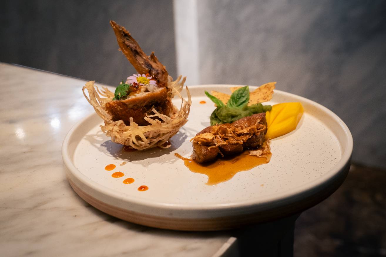 “Chapter I – The Encounter” จาก มาสเตอร์เชฟนูรอ กับเมนูเอกลักษณ์ในตำนาน Phetchabun Tamarind & French “Landes” Foie Gras and Chicken Wing ซึ่งถือเป็นเมนูที่ปฏิวัติวงการอาหารไทยระดับไฟน์ไดนิ่งเมื่อกว่า 45 ปีก่อน ผสานรสเปรี้ยวละมุนของมะขามเพชรบูรณ์ ความหอมหวานจากน้ำตาลโตนดเพชรบุรี และความละเมียดของฟัวกราส์ฝรั่งเศส เป็นการบรรเลงรสชาติระหว่าง “ตะวันออก” และ “ตะวันตก” ได้อย่างวิจิตร เข้าสู่