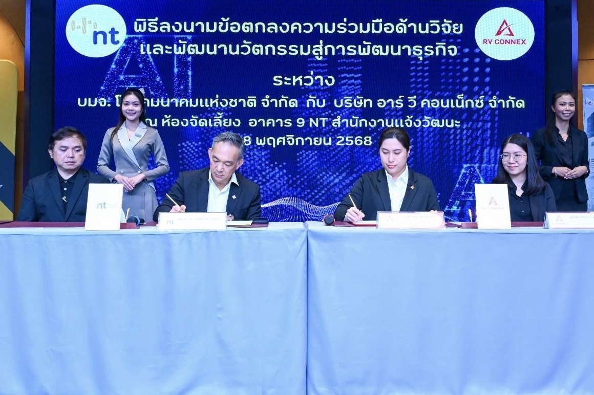 โดยมี พันเอก สรรพชัยย์ หุวะนันทน์ กรรมการผู้จัดการใหญ่ บริษัท โทรคมนาคมแห่งชาติ จำกัด (มหาชน) หรือ NT และ นางสาวนาฏวดี วัฒนกิจ รองประธานแผนกพัฒนาธุรกิจ และกรรมการบริษัท บริษัท อาร์ วี คอนเน็กซ์ จำกัด ร่วมลงนาม ณ ห้องจัดเลี้ยง ชั้น 1 อาคาร 9 NT สำนักงานแจ้งวัฒนะ วันที่ 28 พฤศจิกายน 2568
