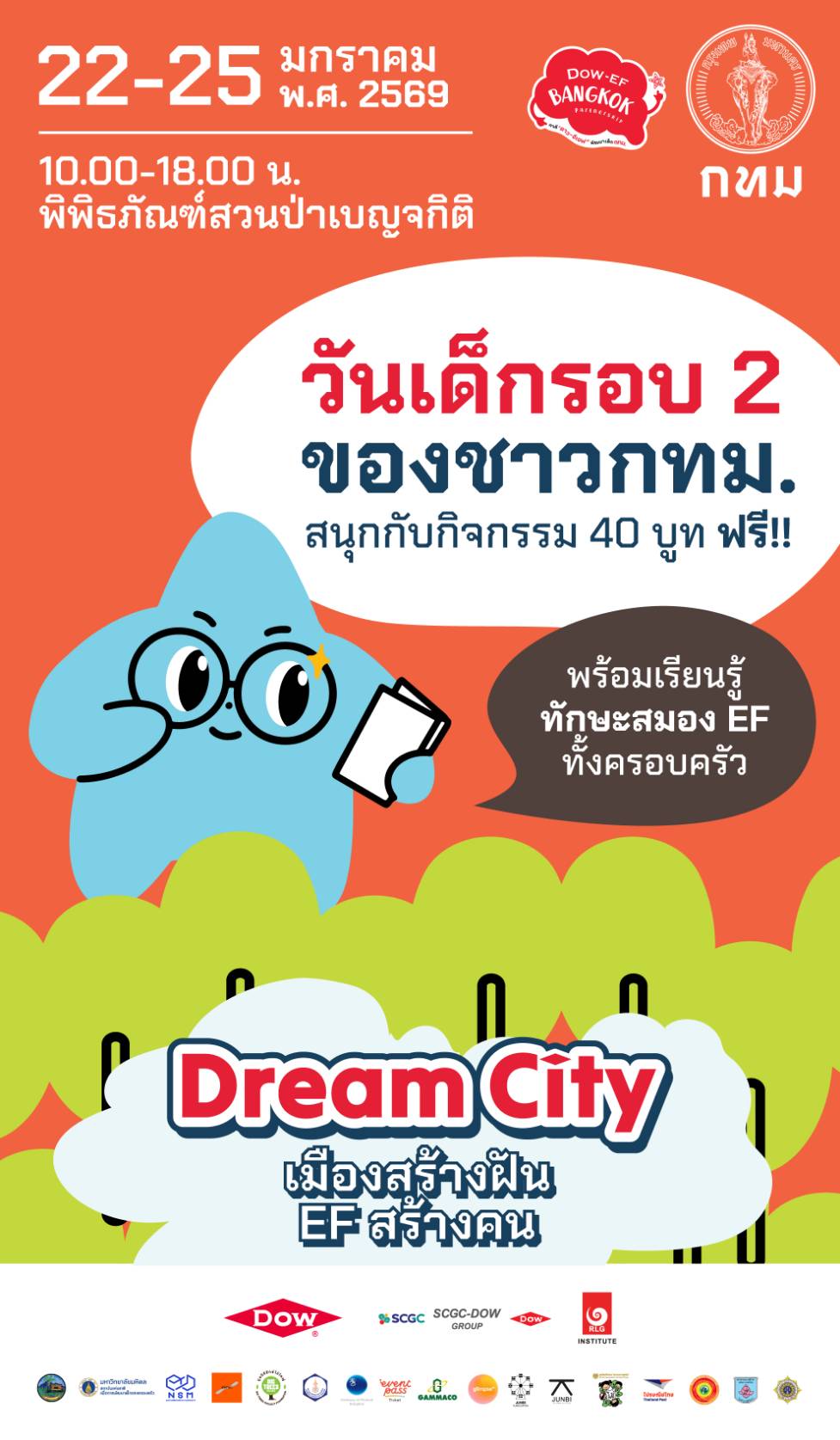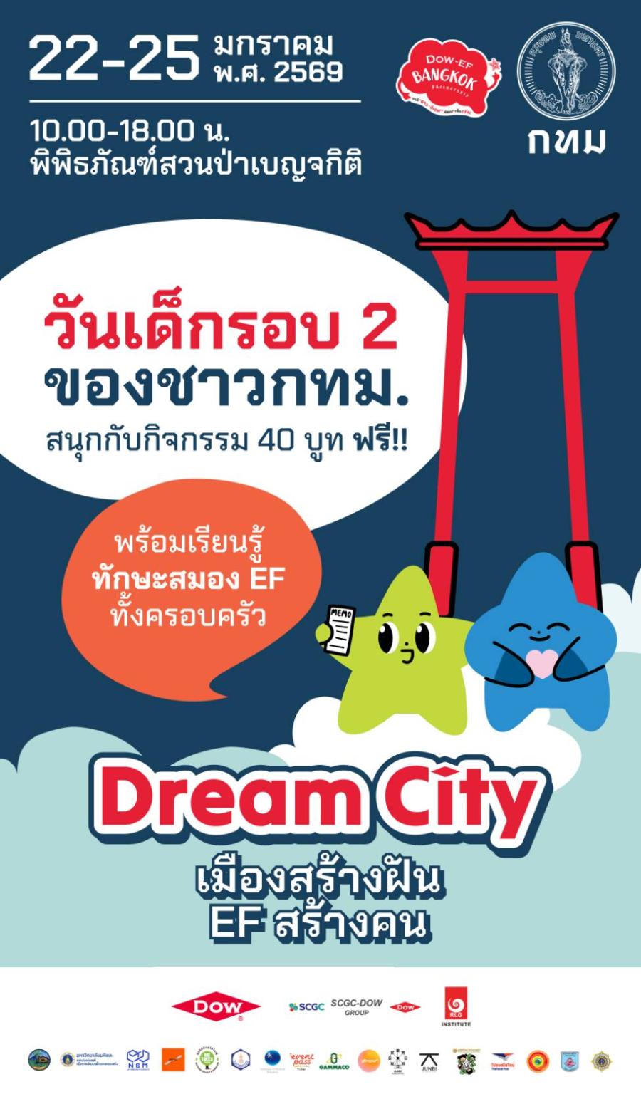 พบกันได้ฟรี! กับวันเด็กรอบ 2 ของชาวกทม. ที่งาน “ดรีมซิตี้: เมืองสร้างฝัน อีเอฟสร้างคน” วันที่ 22–25 มกราคม 2569 ณ พิพิธภัณฑ์สวนป่าเบญจกิติ (โรงงานยาสูบ) เวลา 10:00-18:00 น.