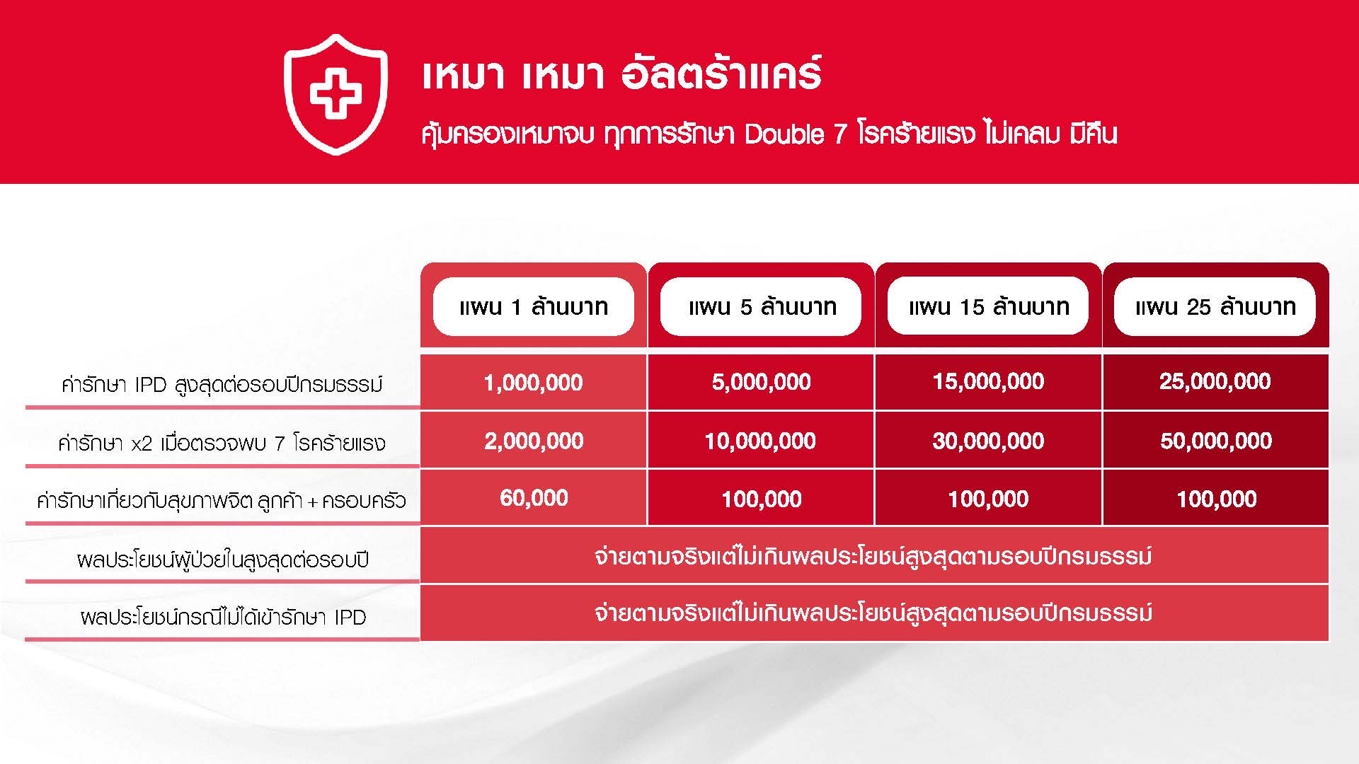 นอกจากความเชื่อมั่นด้านเสถียรภาพทางการเงินรวมถึงพอร์ตโฟลิโอสุขภาพที่สมดุล ปีนี้พรูเด็นเชียลฯ ยังคงเดินหน้าส่งแผนประกันสุขภาพเหมาจ่ายที่หลากหลายสู่ตลาด ไม่ว่าจะเป็น เหมา เหมา อัลตร้าแคร์ พรูเบทเทอร์ แคร์ พรูเหมา เหมา ดับเบิล ชัวร์ และแผนอื่นๆที่ออกแบบมาเพื่อตอบโจทย์การดูแลสุขภาพของคนไทยทุกช่วงวัย ผ่านทุกช่องทางการจัดจำหน่ายของบริษัทฯ สะท้อนถึงความพร้อมและความมั่นใจในการมอบความคุ้มครองด้านสุขภาพอย่างต่อเนื่องในระยะยาว